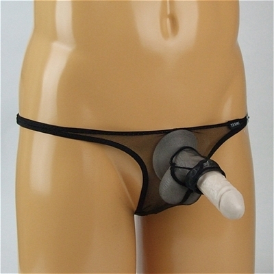 メンズ キラキラスケスケ生地ゾウさんイボイボリング付きTバック (ブラック) ブラック