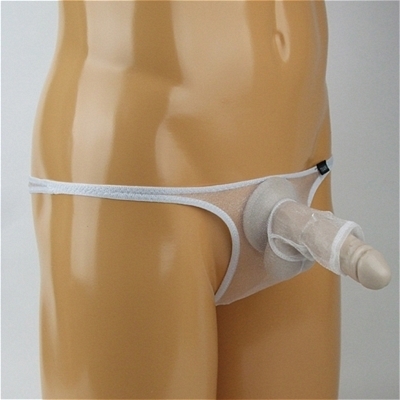 メンズ キラキラスケスケ生地ゾウさんイボイボリング付きTバック (ホワイト) ホワイト