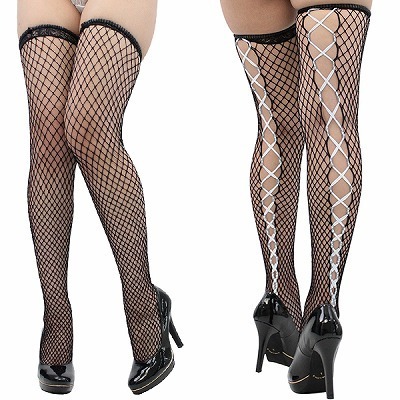 編み上げテープ付ガーター用ストッキング ブラックホワイト ブラック/ホワイト