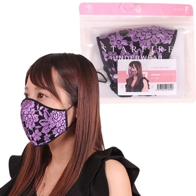 薔薇刺繍レースメッシュマスク ピンク ピンク