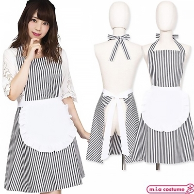 フリルストライプエプロン ブラック ブラック