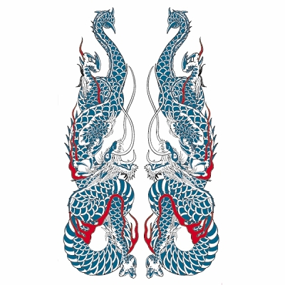 タトゥーシール 双頭龍・青