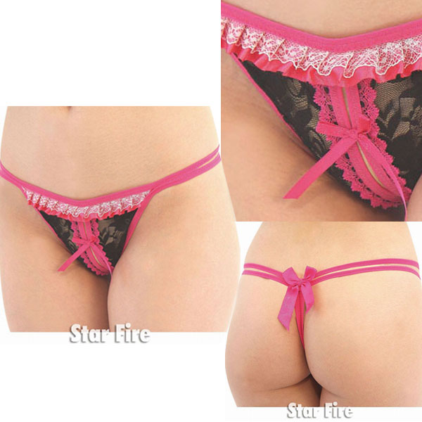 ■商品ID:b18260 Mサイズ:W58〜70cm・H87〜95cm <EROX>クロッチ部分にスリットを入れた、ローズ×黒のセクシーオープンショーツ。 |
