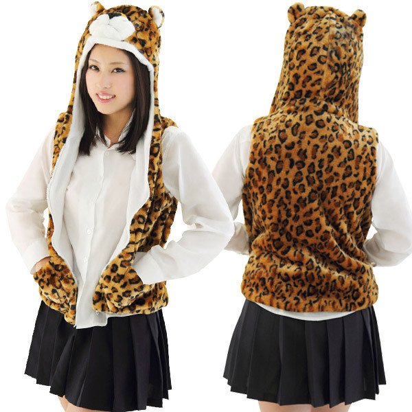 ヒョウ柄のコスプレや女豹のコスチュームをお探しならこちら♪個性的スタイルをアピールしよう!ふわふわ素材のヒョウ柄ベスト。 ●アニマルで定番のヒョウ柄●左右に便利なポケット付き●立体的な鼻&耳付の顔フード●ふわふわモコモコの手触り。 普段使いでもイベントやコスチュームのお供にしても、目立っちゃうこと間違いなし!立体加工の顔付きフードをかぶれば、ワイルドなヒョウになりきれそうなアニマルアイテムです。 ヒョウ柄で女豹のコスプレなのでハロウィン仮装衣装やハロウィンパーティーなどにも最適です♪ ※こちらの商品は受注発注商品の為、ご注文から発送まで2〜3営業日掛かる場合が御座います。