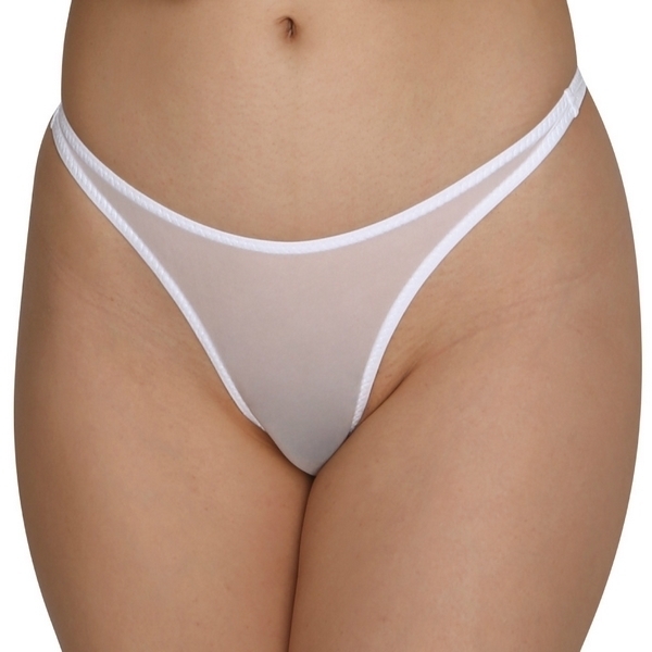 透け感&ハイレグで魅せる♪シンプルスタイルのレディースTバックショーツ。●極薄ホワイトシースルー●縦横2wayストレッチ素材●ストッキング風の肌触り●脚長美脚のハイレグ仕様●身体にしっかりフィット●セクシーなTバックタイプ●女性用Mサイズ・日本製。フェミニンな透け感でセクシーさもしっかり♪普段使いもしやすいシンプルデザインのセクシーランジェリー!上下左右に伸縮するストレッチ素材ではき心地も抜群です。