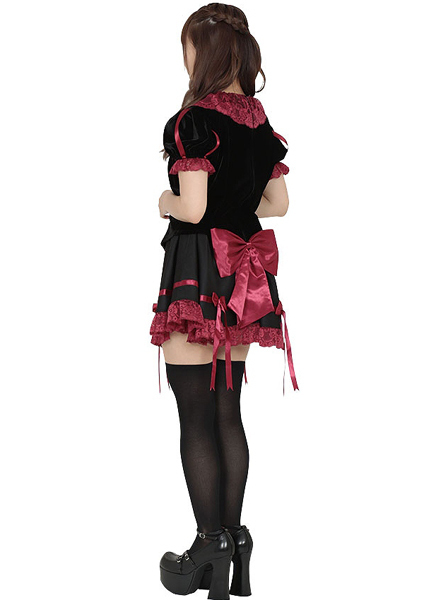 ハロウィンコスプレを通販で買うならコチラの商品はいかがでしょうか?ゴシックなプリンセス風コスチュームは、黒と真紅のカラーを取り入れダークな雰囲気を醸し出すことで、闇堕ちした血みどろなバックボーンを持つ姫をイメージ!赤の繊細なレースや各所に配置された赤や黒のリボンが、衣装のデザインを可愛らしく上品にまとめています。 ミニ丈スカートなのでニーハイと併せてタトゥーシールで足元を飾れば、ハロウィン気分も一層高まりますよ♪