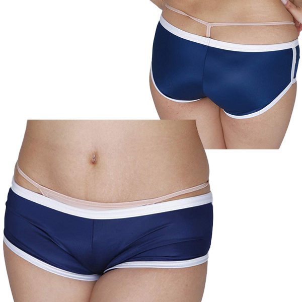 ■商品ID:b28166 Mサイズ パッケージ:16.0×13.0cm 日本製 柔らかな光沢と伸縮性が特徴的なストレッチ生地を採用!穿き心地抜群なブルマ風ホットパンツ(ネイビー)。 |