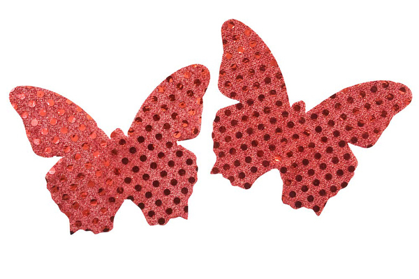 ■商品ID:b28623 パッケージ:13.8×15.9cm 本体:直径:約11.0cm ラメがキラキラと光る赤い蝶で胸を飾るお洒落なニップレス(赤)。 |