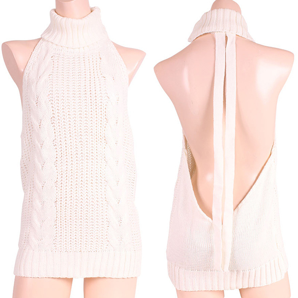 一年通して着こなせるホルターネック仕様の人気ニットセーター。 お尻まで覆うロング丈に、サイドとバックを大きく開いたデザインが印象的!首の後ろでリボンを結び可愛くアピールすれば、どんな男性も魅了されること間違いなし♪爽やかなホワイトカラー ※こちらの商品は受注発注商品の為、ご注文から発送までに3、4営業日掛かる場合が御座います。