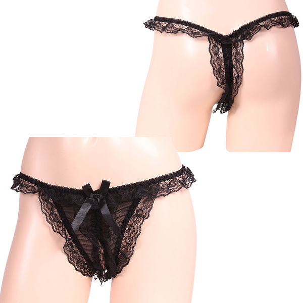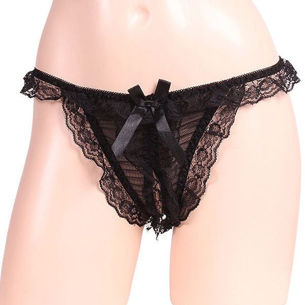 トップページ > オープン ブラ・ショーツ(穴あき) > レースの揺れ感が際立つオープンショーツ ブラック