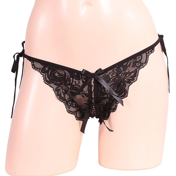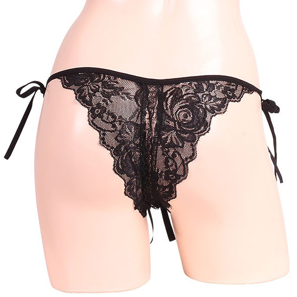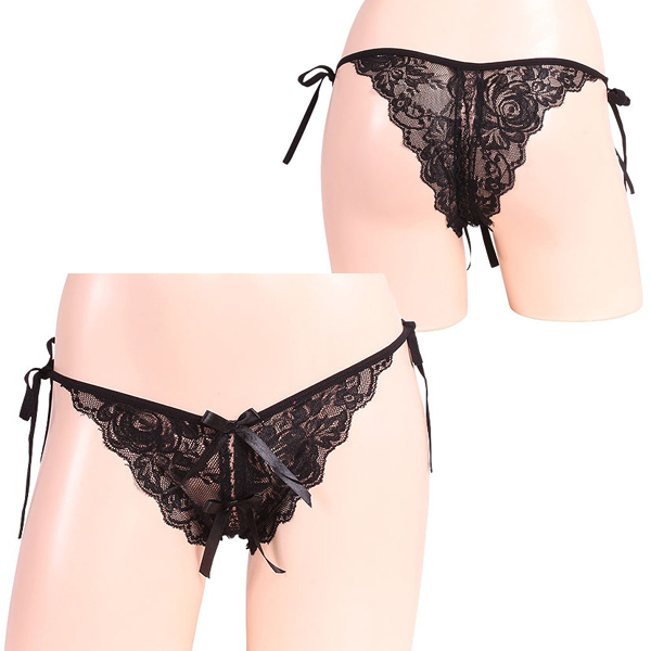 トップページ > オープン ブラ・ショーツ(穴あき) > 女らしさ満開サイドリボンオープンショーツ ブラック