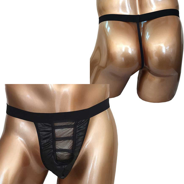 ■商品ID:b30103 フリーサイズ パッケージ:13.8×15.9cm 涼し気なブラックメッシュの窓が小悪魔な魅力を放つ男性用GストリングTバック。 |