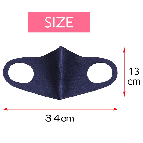 ■商品ID:b30127 約34.0×13.0cm シックなネイビーカラー♪汗や湿気もすぐに乾いてずっと快適!速乾性に優れた伸縮性抜群の大人用立体マスク。 |