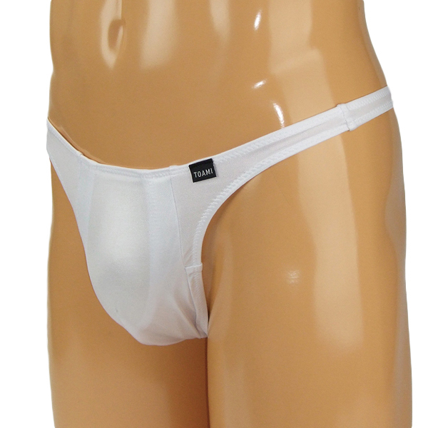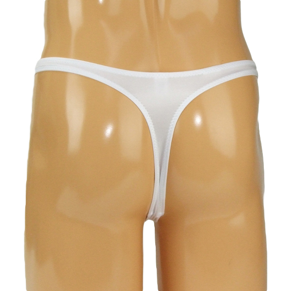 メンズ 光沢ストレッチ生地玉袋付きTバック Mホワイト33%OFF 定価2970円 → 1980円
