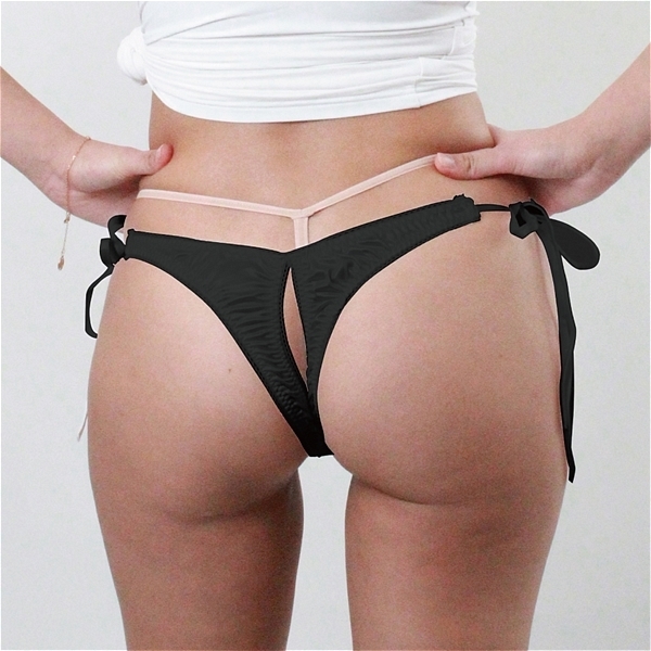 光沢が有り肌触りの良い生地レース付き脇ヒモ股ワレTB Lサイズ ブラック33%OFF 定価2310円 → 1540円
