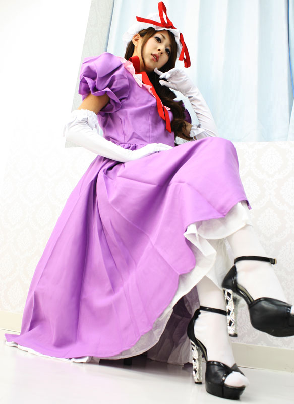 八雲紫はやくもゆかりと読み、東方Projectのキャラとしておなじみですね!初出は東方妖々夢でボスキャラとして登場しました。 また、当方といえば対戦格闘型ゲームの東方緋想天が特に人気ですが、その東方緋想天においての八雲紫の怒りの台詞は有名ですね♪こちらのアニメコスチュームはそんな東方・八雲のイメージである紫×白をベースとしたカラーで独特のオーラを放つコスチューム。 スカート部分のふわっとした2段フリルはボリューム満点!帽子にデザインされた赤のリボンでキュートさも倍増!上から下まで、どこを取っても納得の仕上がりです。 こちらはBIGサイズ。