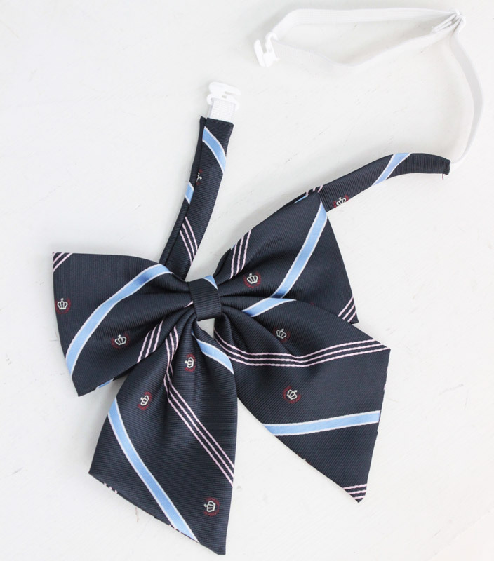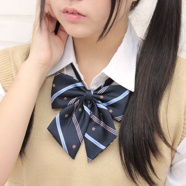 ■商品ID:cm0772 フリーサイズ 本体:首周り長さ40〜50cm(ゴム最大86cm) セット内容:スクールリボン単品(白い留め具、ゴム紐で長さ調整可) 2色の斜めストライプと月桂樹+王冠の紋章がキリッとした印象を与えるスクールリボン(紺)。 |