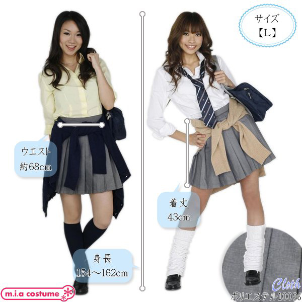 ■商品ID:cm1323 Lサイズ 対応サイズ:154〜162cm 実寸:W約68cm・着丈43cm セット内容:スカート単品(左脇ファスナー) 素材:ポリエステル100% 圧倒的なラインナップで展開!女子校生に人気のカラーが多数♪こちらはグレーカラーのスタンダードなプリーツスカートでコーデはあなた次第!ウエストは3段階アジャスター、左横にはポケットがついていて機能的です。 |